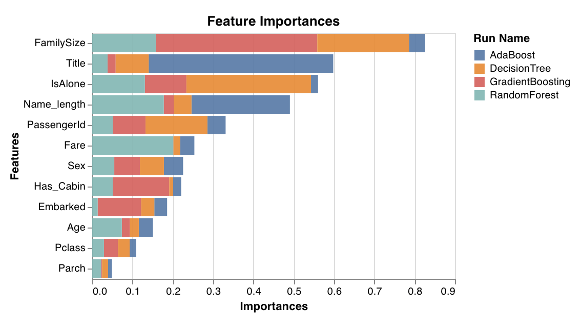 分類タスクの各特徴量の重要性を評価し、プロットします。ツリーのように feature_importances_ 属性を持つ分類器でのみ動作します。