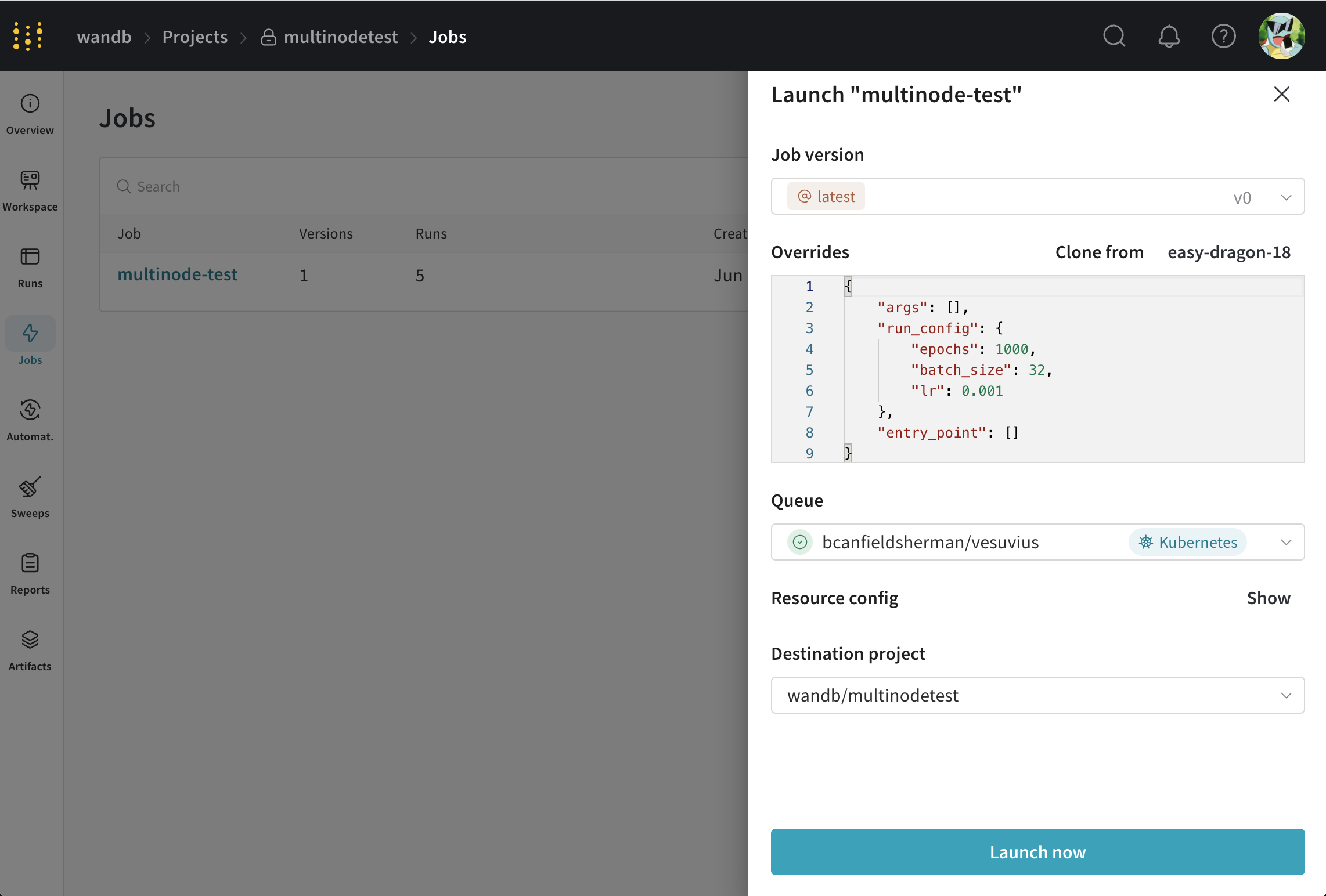 このチュートリアルでは、W&B Launchを使ってKubernetes上でマルチノードジョブを起動する方法を学びます。以下のステップに従います: